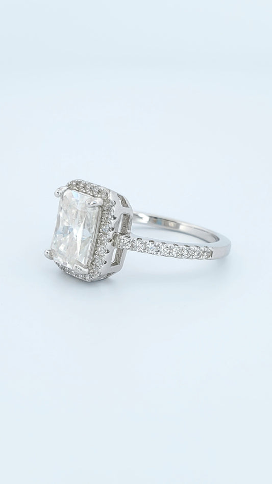 2ct Emerald Cut Moissanite Engagement Ring 925 Sterling Silver Plated With 18k White Gold