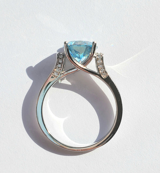 2ct Round Cut Blue Moissanite Ring 925 Sterling Silver - platinum plated
