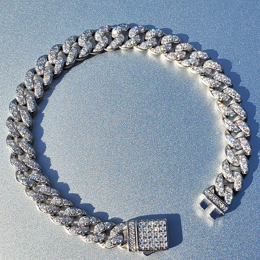 8mm Moissanite Cuban Chain Bracelet 925 Sterling Silver 18K Gold Plated