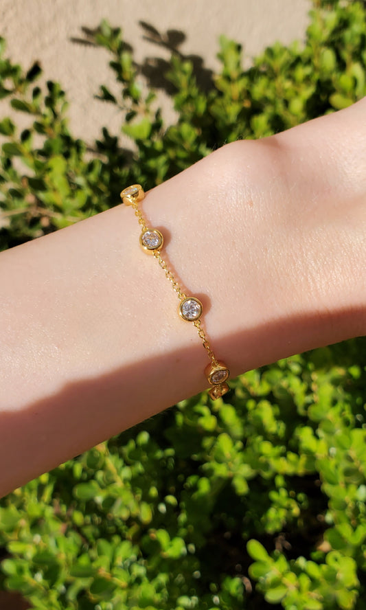 4mm Round Cut Moissanite Tennis Bracelet 925 Sterling Silver 18K Gold Plated