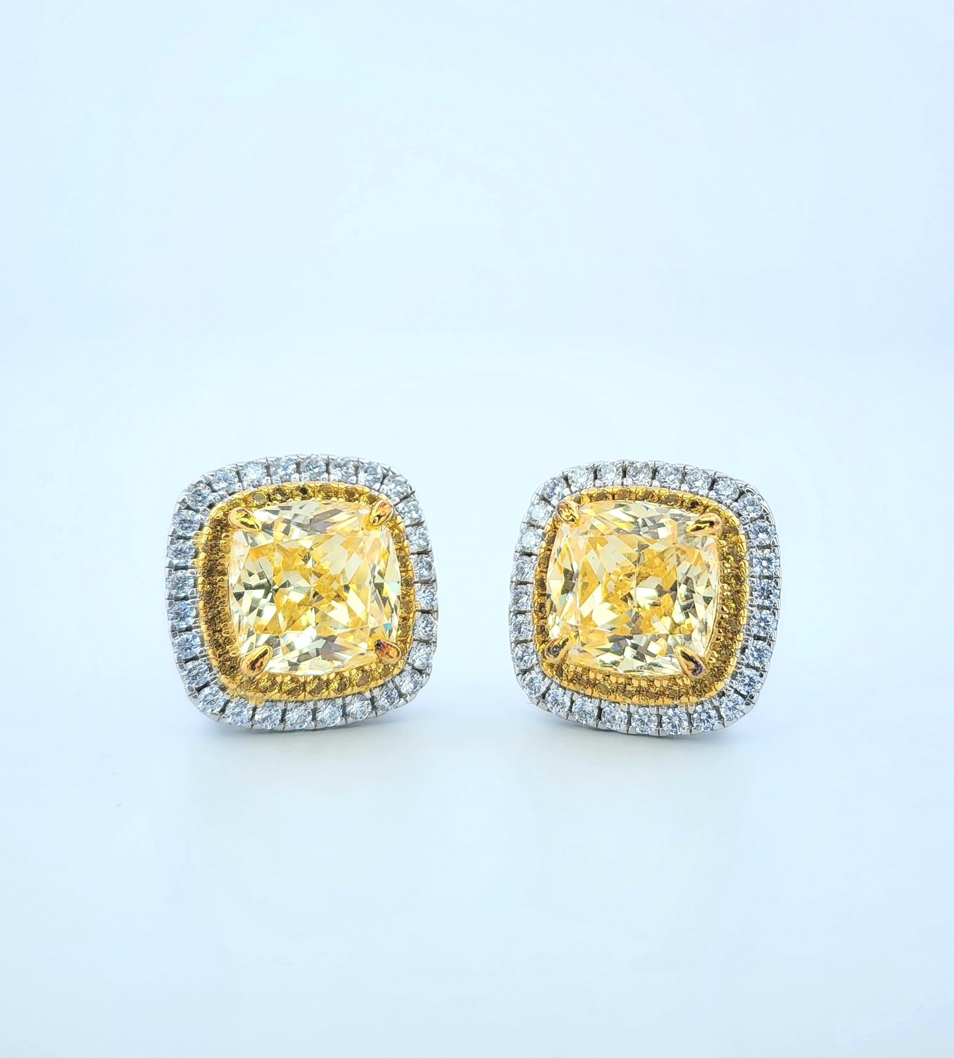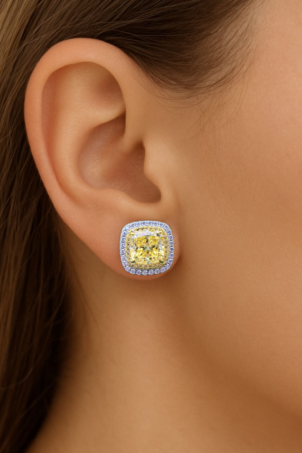 These stunning earrings feature brilliant 8mm x 8mm cushion-cut lab-created stones that sparkle with incredible fire and clarity. Surrounded by a halo of shimmering stones, they deliver a luxurious high-end look that stands out effortlessly.