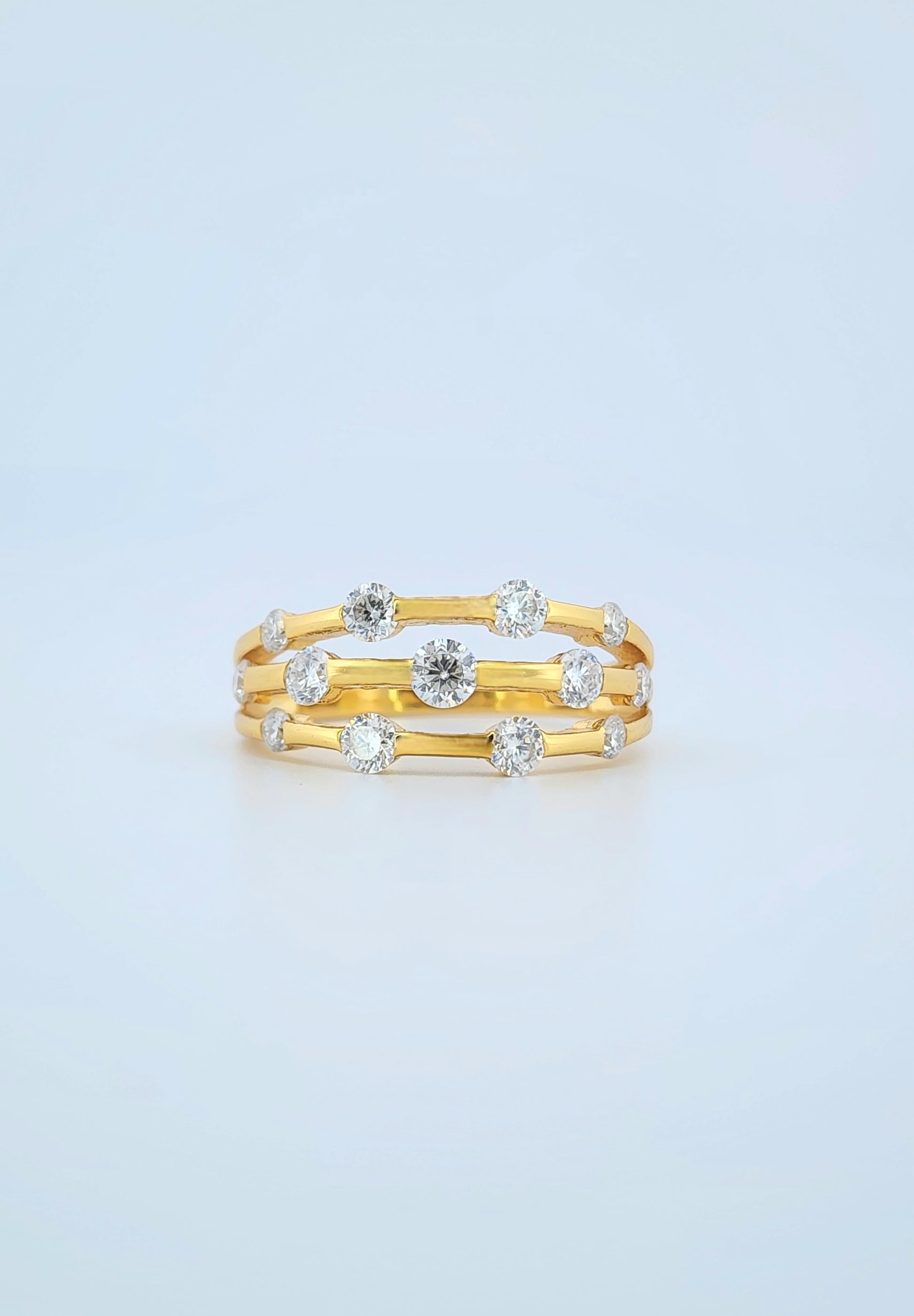 Moissanite Three Row Wedding Ring 925 Sterling Silver With 18k gold plating